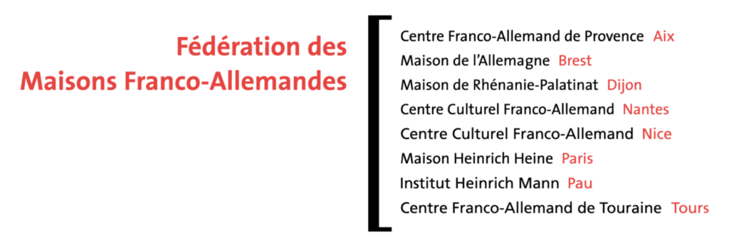La Fédération des Maisons Franco-Allemandes a été créée en 1997 pour sceller la coopération entre les centres culturels allemands et les centres culturels franco-allemands en France.